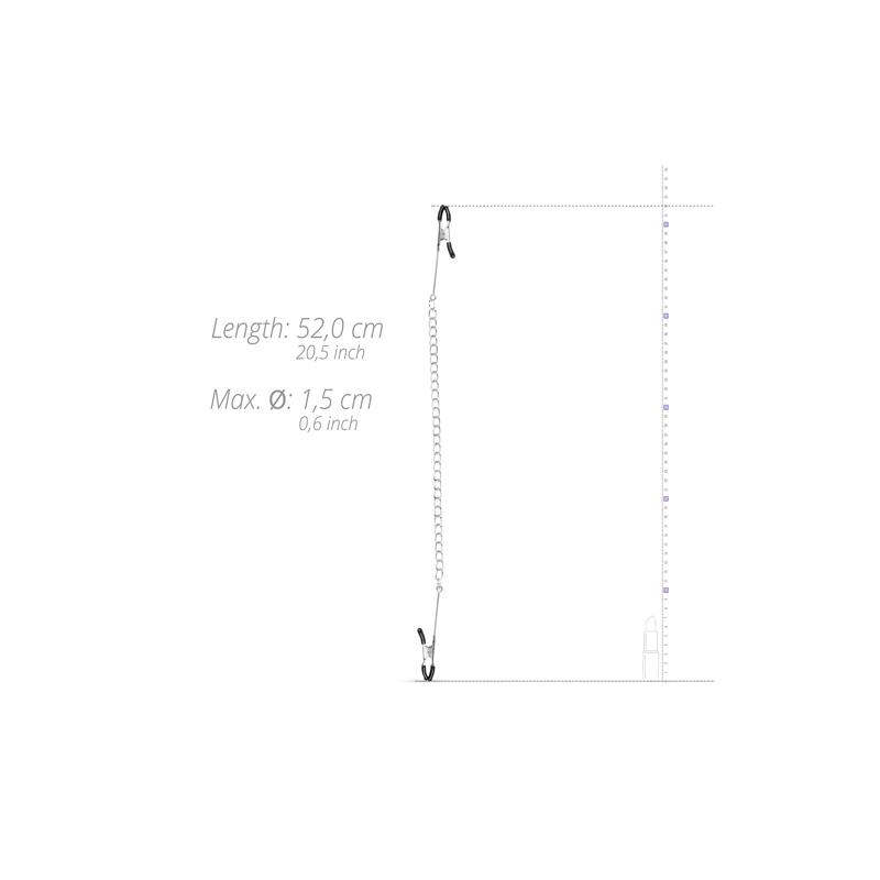 These extra long nipple clamps from the EasyToys collection provide extra sensations in the bedroom. The clamps are provided with soft protection caps and have a long metal bottom part. The clamps are connected with a long metal chain. The chain offers extra sensations when you wear the nipple clamps and you can even ask your partner to gently pull the chain for maximum pleasure. Are you ready for more?