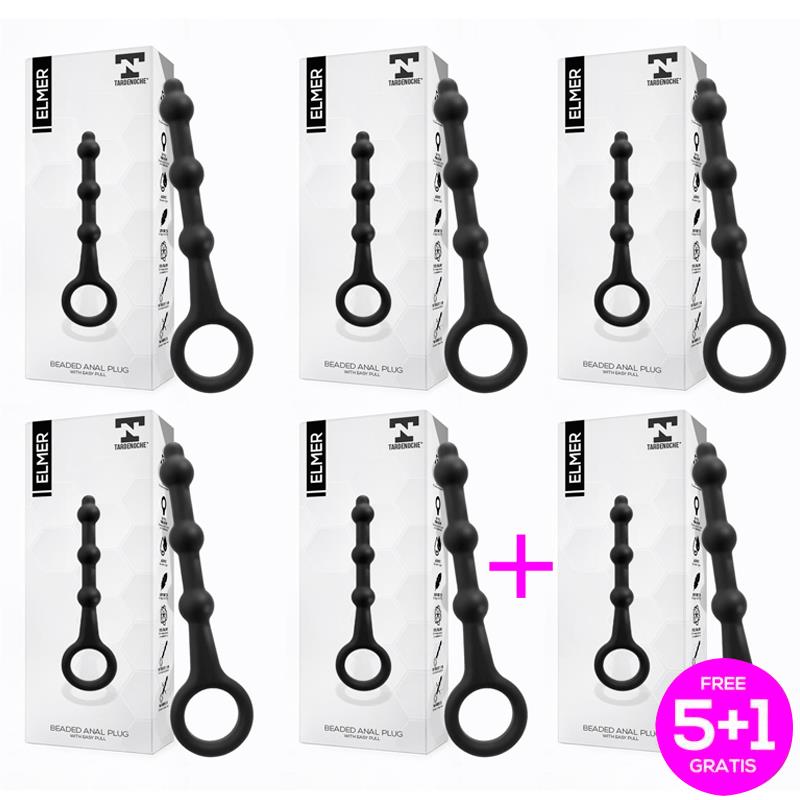 Pack 5+1 Elmer BEADED BUTT PLUG WITH EASY PULL RING SILICONE